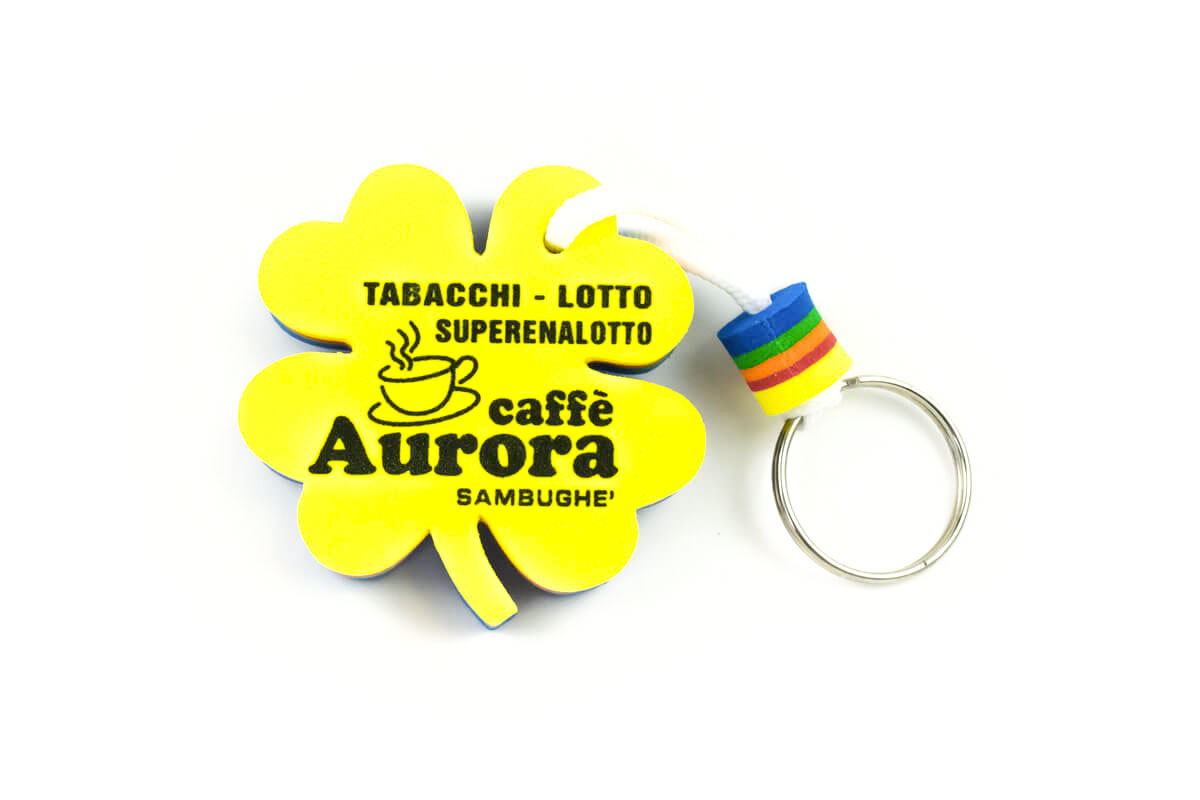 Four-leaf clover keyrings realized with certified fommy and 100% made in Italy. Totally customizable with names and logos.