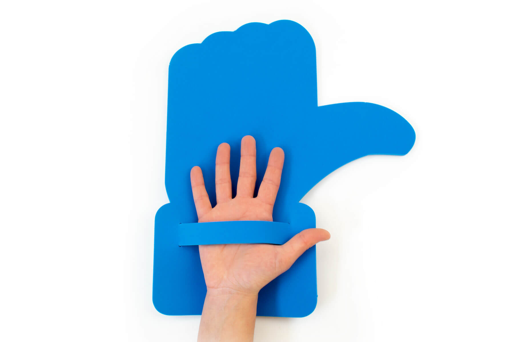 Like foam hand with cut. Perfect for sport’s cheering, concerts and other events. Certified fommy and 100% made in Italy. Totally customizable.