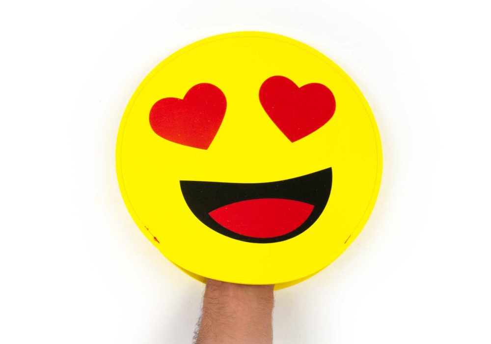 Our emoji gadget are realized with certified eva foam material, known as well as crepla or fommy. Production technique is digital printing on a white base except for heart eyes face foam hand, realized in silk screen on a yellow base. These gadgets can be customized with every emoji you like: they can contain quotes, names or corporate logos as well.