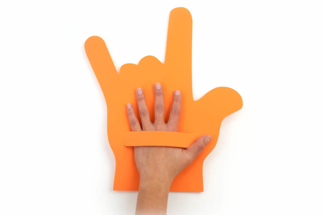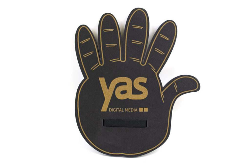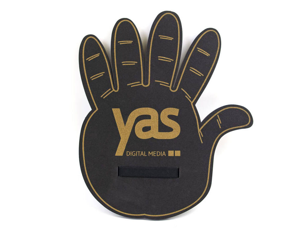 Publisearch foam hands can be realized in many shapes and colors. They are printed using silkscreen printing technique and made with certified Eva foam, a non-toxic material 100% made in Italy.