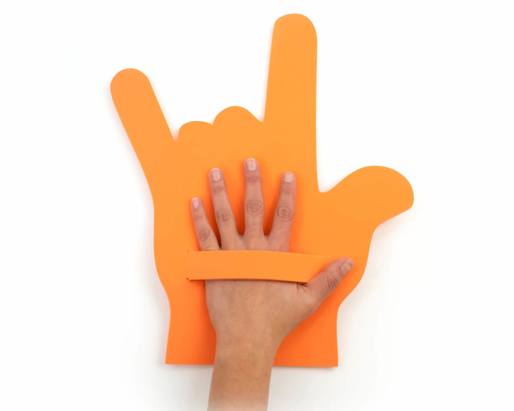 Glove hands are the ideal product to let cheering crowds promote your brand in sport events such as soccer, football, rugby, or in concerts and shows.