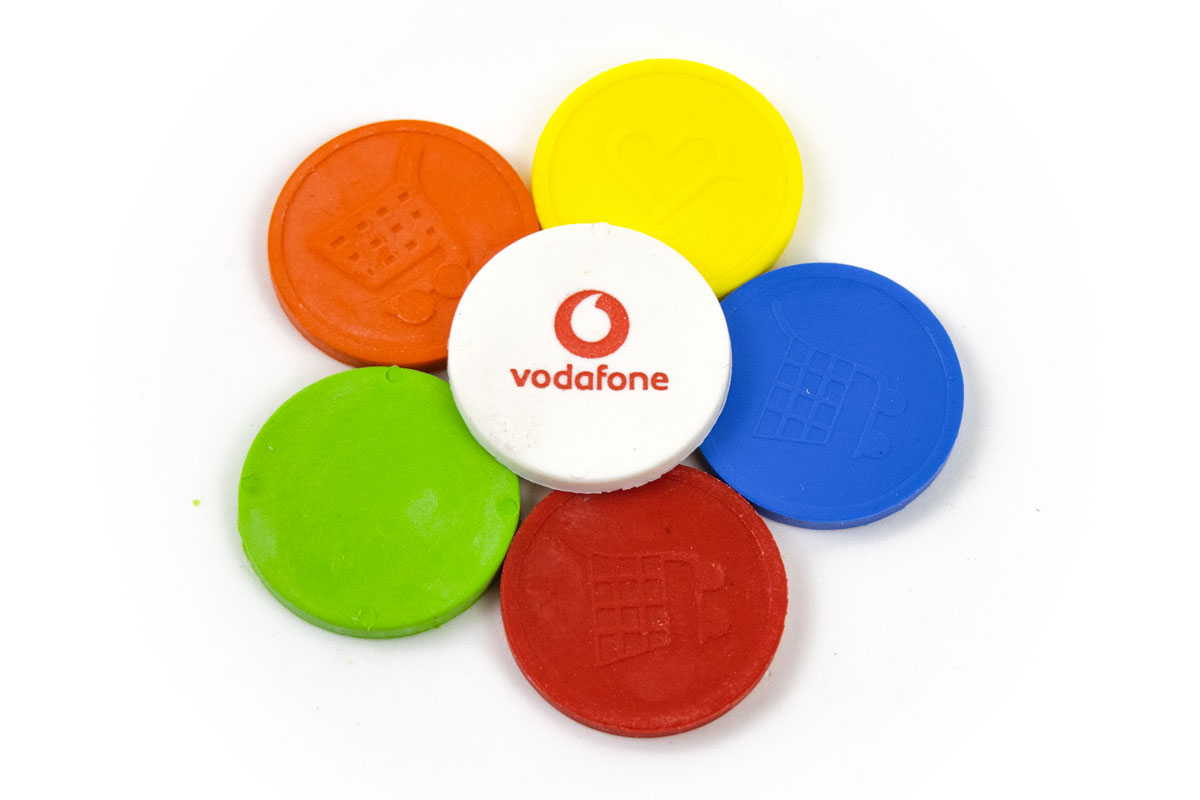 Gettone carrello realizzato con materiale biodegradabile Apinat Bio . Personalizzazione ad hoc del prodotto con stampa di loghi. Colore a scelta anche rif. Pantone