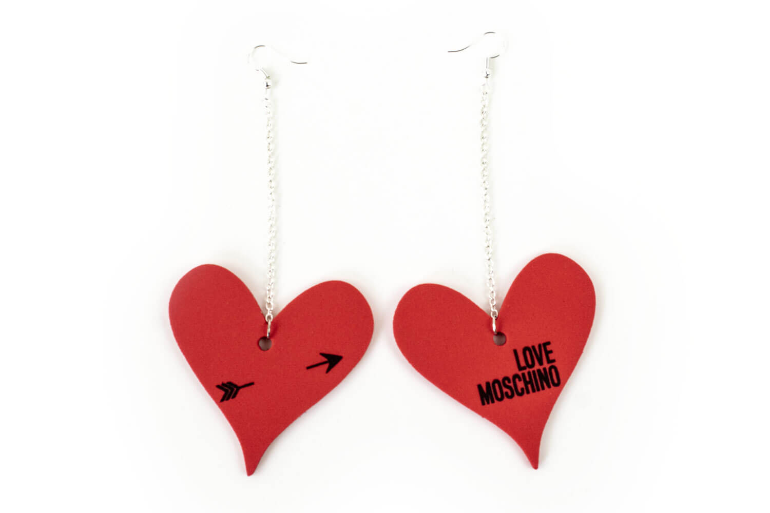 Orecchini con ciondolo a forma di cuore. Gomma EVA certificata e 100% made in Italy. Personalizzazione ad hoc del prodotto con nomi e loghi stampati.