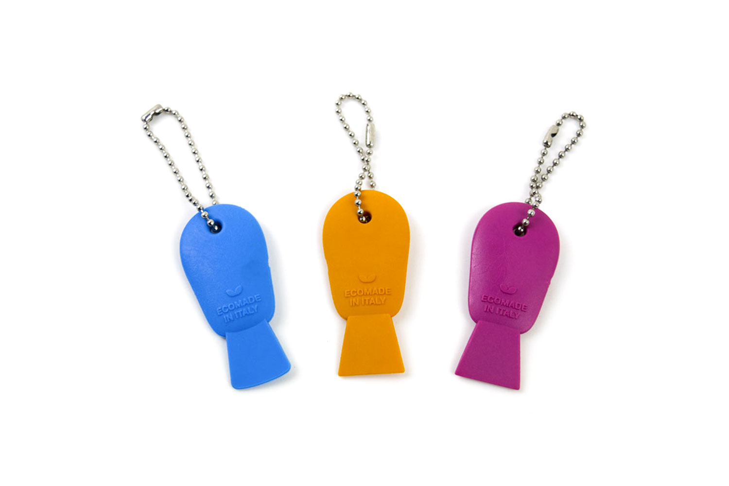 Portachiavi Spatolina in bioplastica Apinat Bio. Rimuove l’inchiostro dei Gratta e Vinci . Personalizzazione ad hoc del prodotto con loghi. Made in Italy