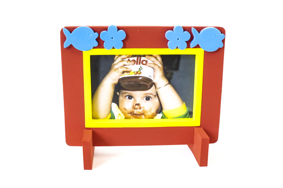 Portafoto rettangolare con base realizzato in gomma EVA certificata e 100% made in Italy. Personalizzazione ad hoc con loghi.