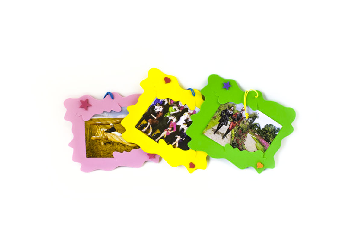 Portafoto splash realizzato in gomma EVA certificata e 100% made in Italy. Personalizzazione ad hoc del prodotto con nomi e loghi.