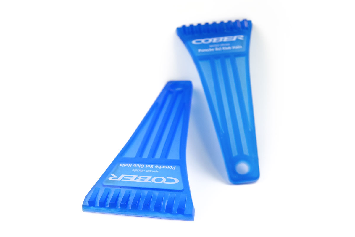 Raschiaghiaccio realizzato in Pla Bioplastica 100% made in Italy. Personalizzazione ad hoc del prodotto con stampa di nomi e loghi.