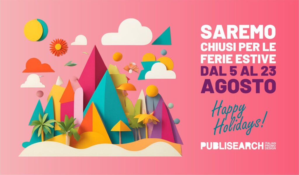 Saremo chiusi per le ferie estive dal 5 al 23 Agosto. Auguri di buona estate da tutto lo staff!