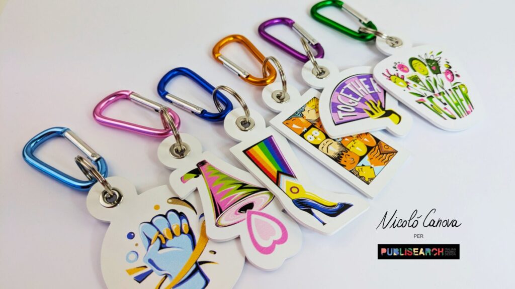 Publisearch è sempre alla ricerca di nuovi modi per coniugare sostenibilità, creatività e impegno sociale. Oggi siamo felici di presentare un progetto speciale che unisce questi valori: una linea esclusiva di portachiavi in pelle rigenerata, realizzati in collaborazione con l’illustratore Nicolò Canova, per sostenere i diritti della comunità LGBT+.