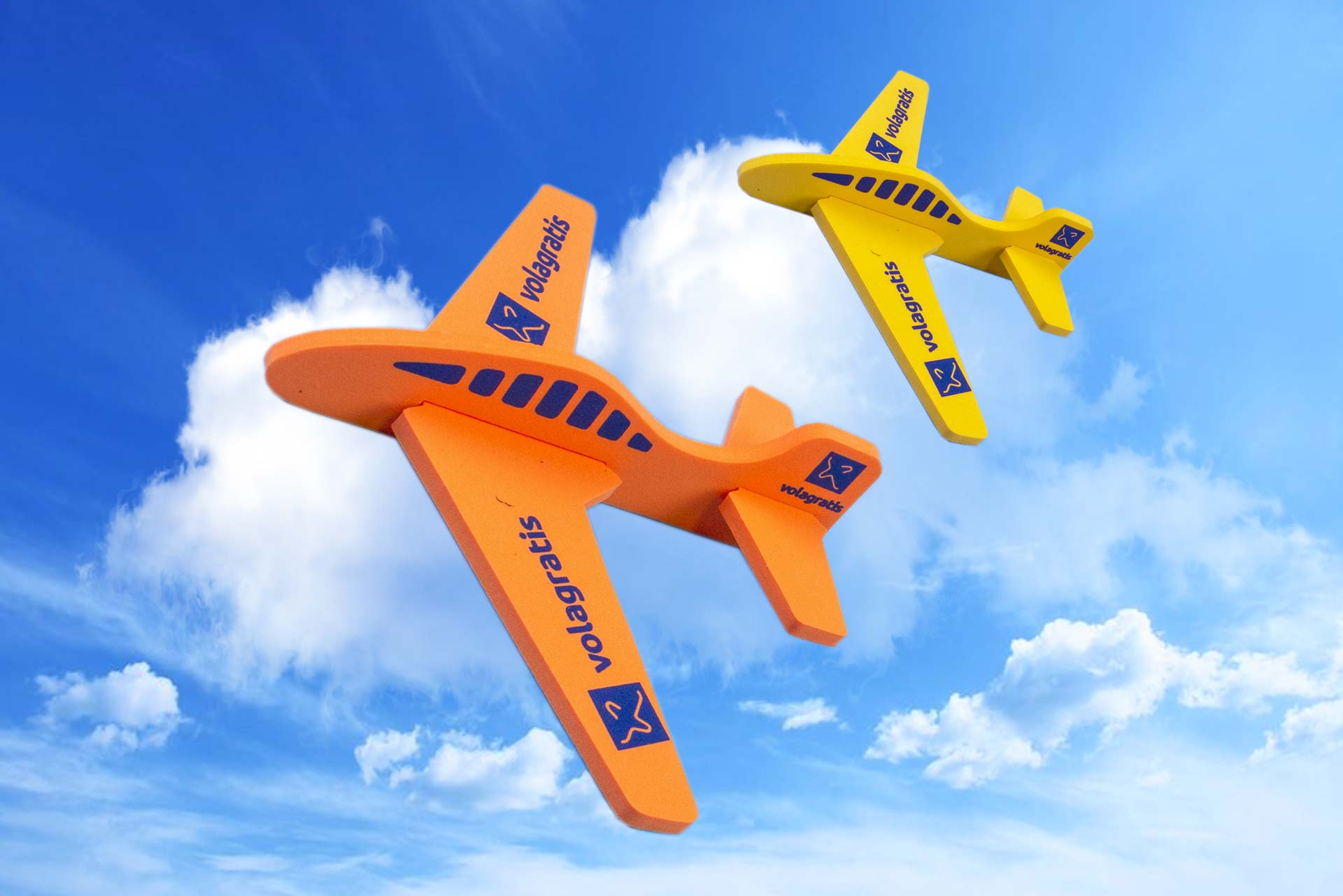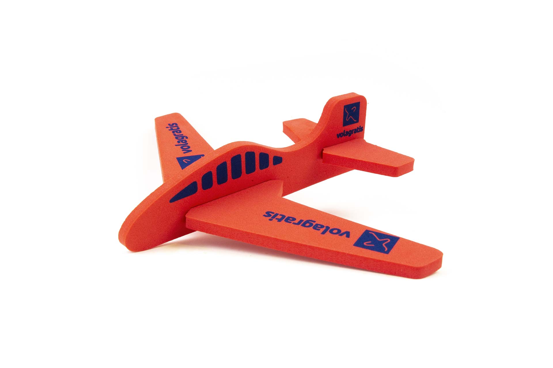 Aeroplano montabile realizzato in gomma e.v.a. certificata e 100% Made in Italy. Personalizzazione ad hoc del prodotto con stampa di nomi e loghi aziendali.