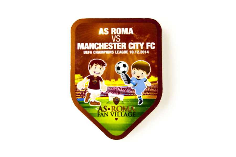 Calamita sport a forma di scudetto. Gomma EVA certificata e 100% made in Italy.  Personalizzazione ad hoc del prodotto con stampa di nomi e loghi aziendali.