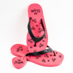 Tavolozza ciabatte personalizzate a forma di cuore con ciabatte e portachiavi, ideale per San Valentino e matrimoni. Stampa serigrafica. Gomma EVA atossica, certificata e 100% Made in Italy.