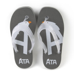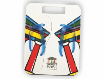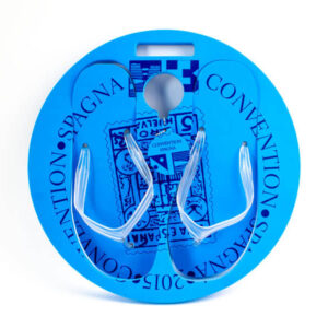 Tavolozza rettangolare con ciabatte personalizzate. Stampa serigrafica. Realizzate in EVA atossica, certificata e 100% Made in Italy. Fondo antiscivolo a nido d’ape.