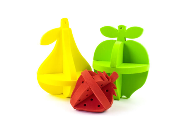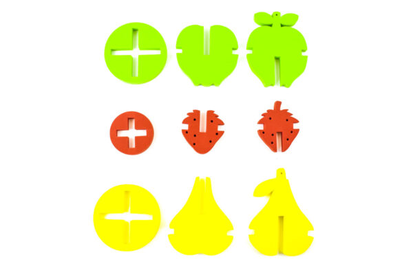 Frutta 3d realizzata in gomma eva certificata, detta anche crepla o fommy, 100% Made in Italy. Personalizzazione ad hoc del prodotto con stampa di nomi e loghi.