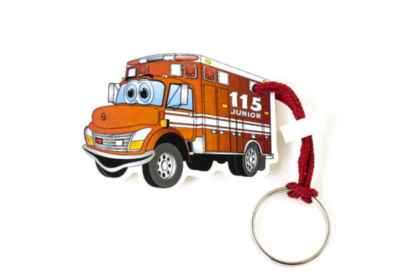 Portachiavi a forma di camionetta dei pompieri. Gomma EVA certificata e 100% made in Italy completamente personalizzabile.