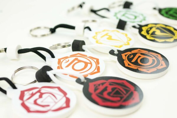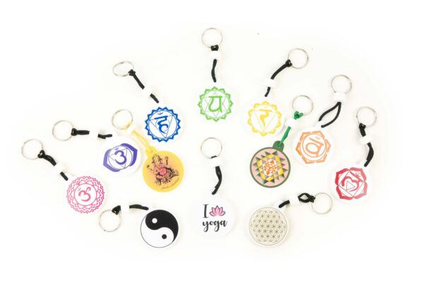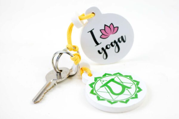 Portachiavi Yoga realizzati in gomma e.v.a. certificata e 100% Made in Italy.