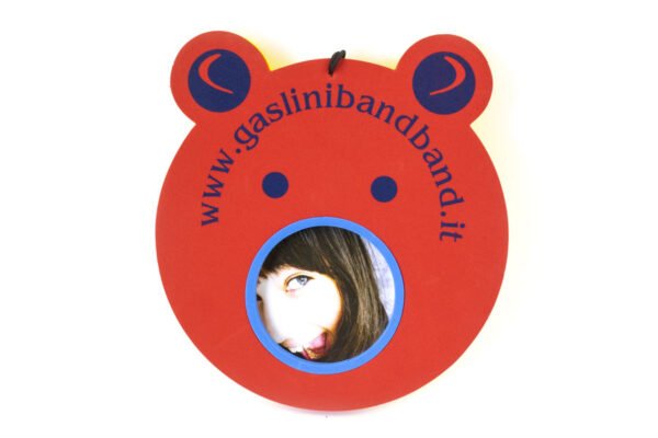 Portafoto Orso in gomma eva certificata e 100% Made in Italy. Personalizzazione ad hoc del prodotto con stampa di nomi e loghi aziendali.