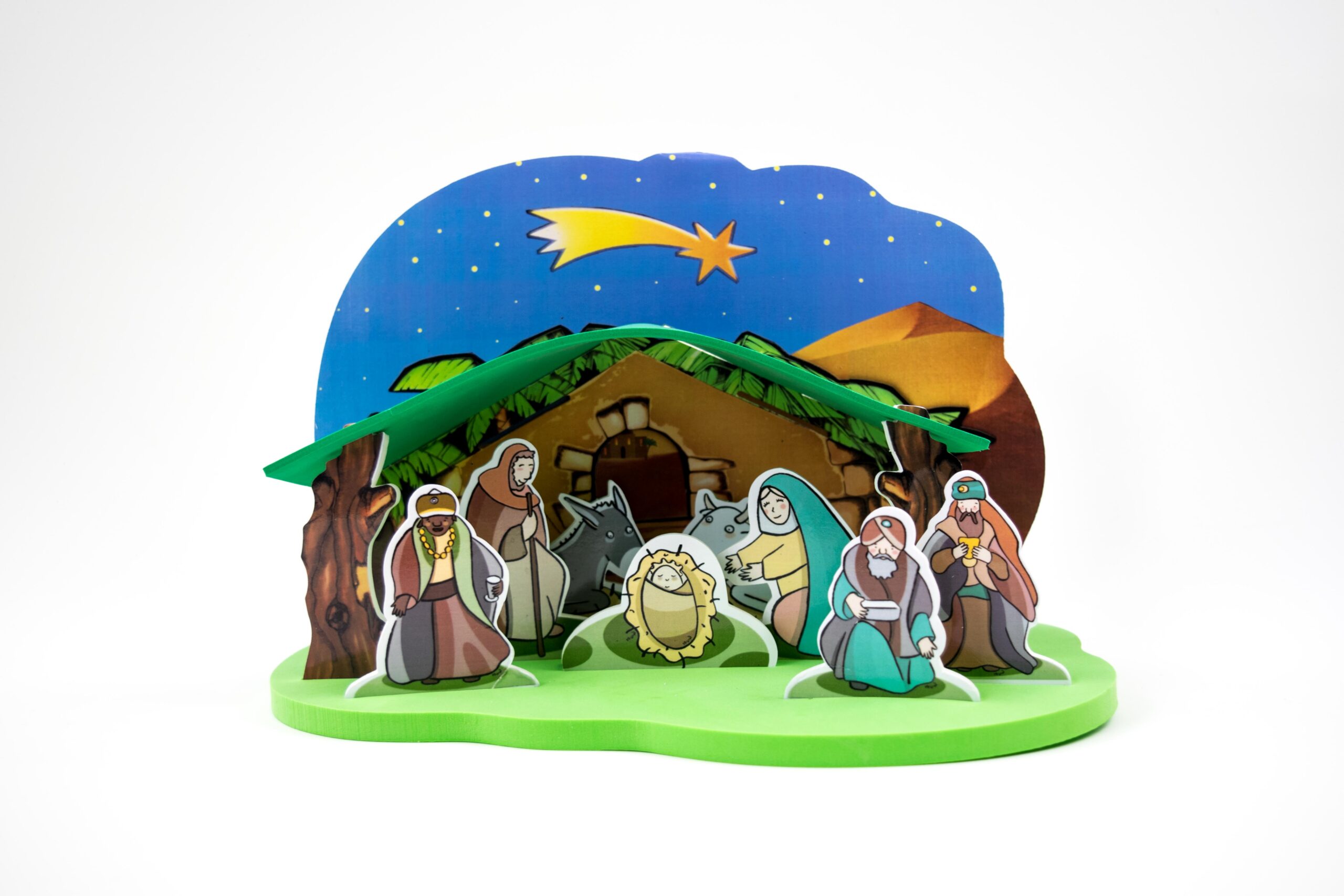 Presepe grande in gomma eva certificata 100% Made in Italy, Stampa digitale. Personalizzazione stampa di nomi e loghi aziendali.