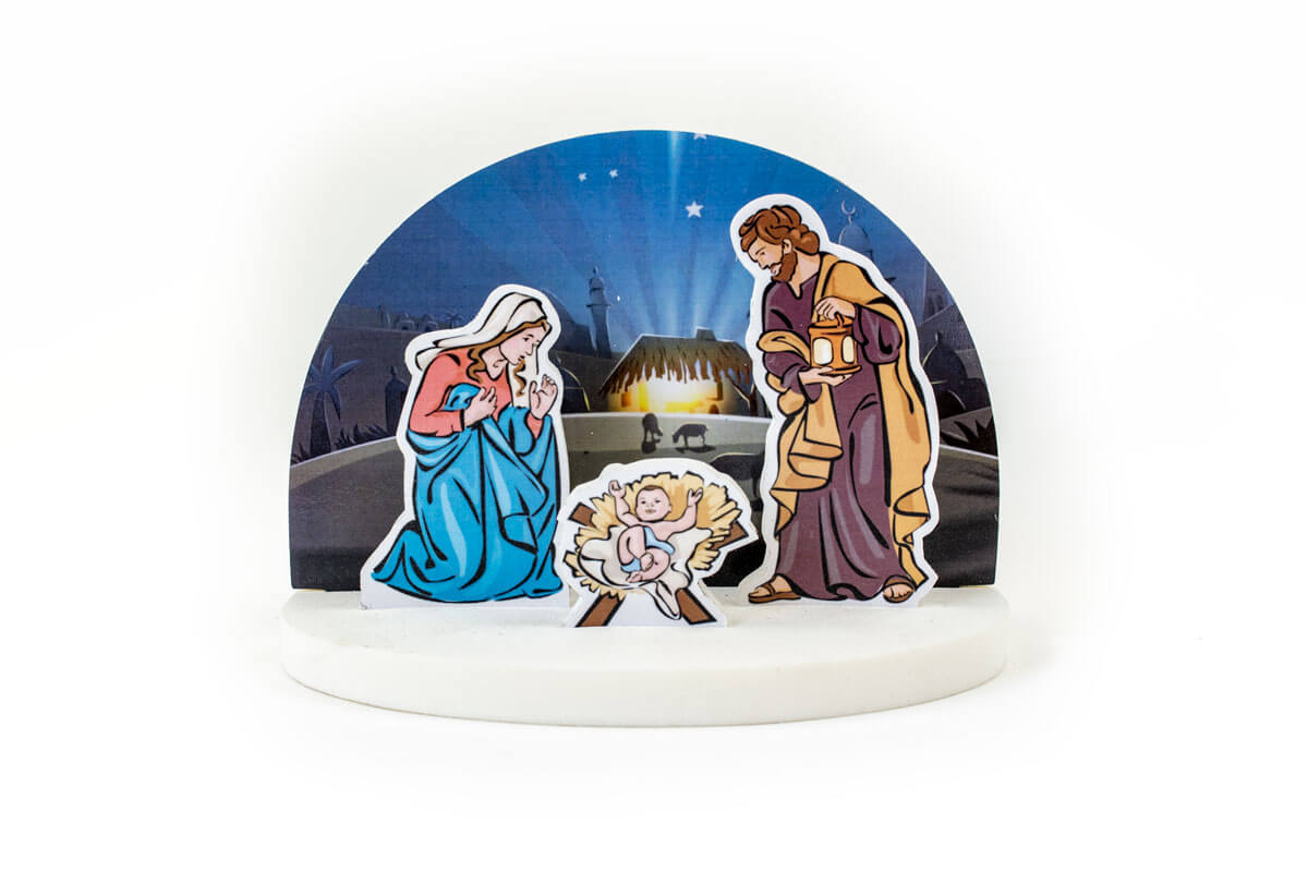 Presepe medio in gomma eva certificata 100% Made in italy. Personalizzazione ad hoc del prodotto con stampa di nomi e loghi aziendali.
